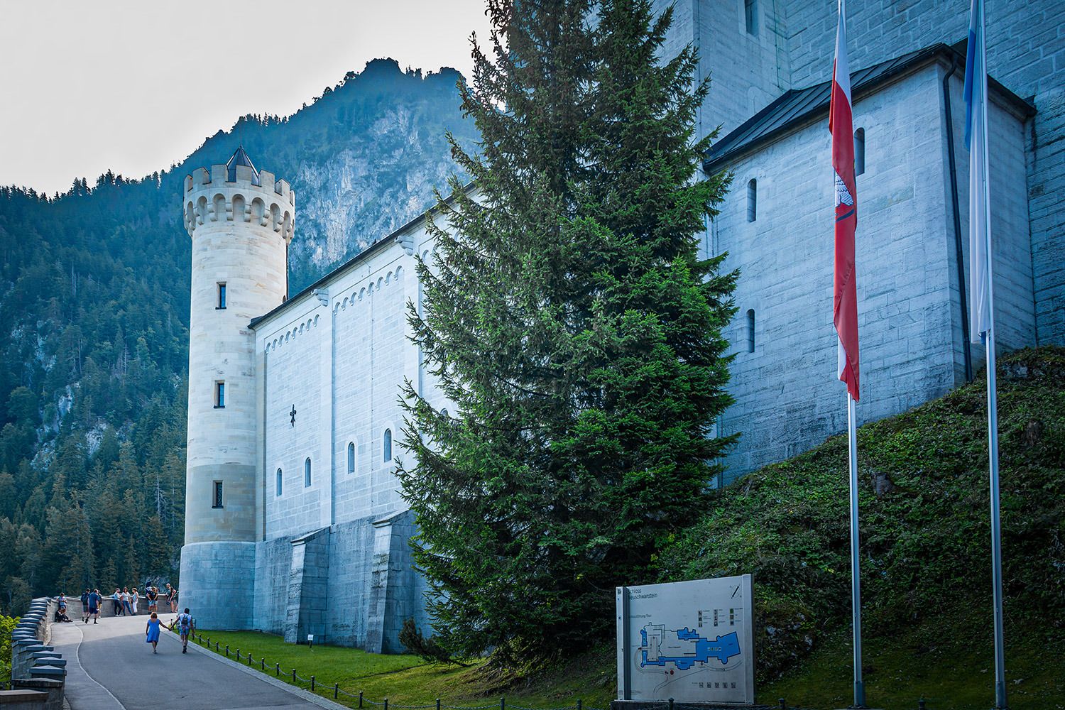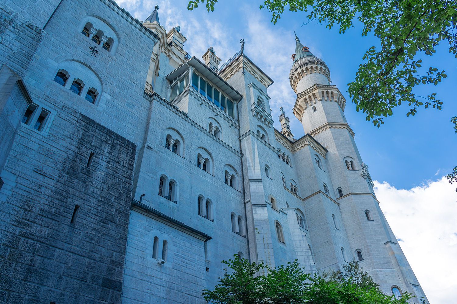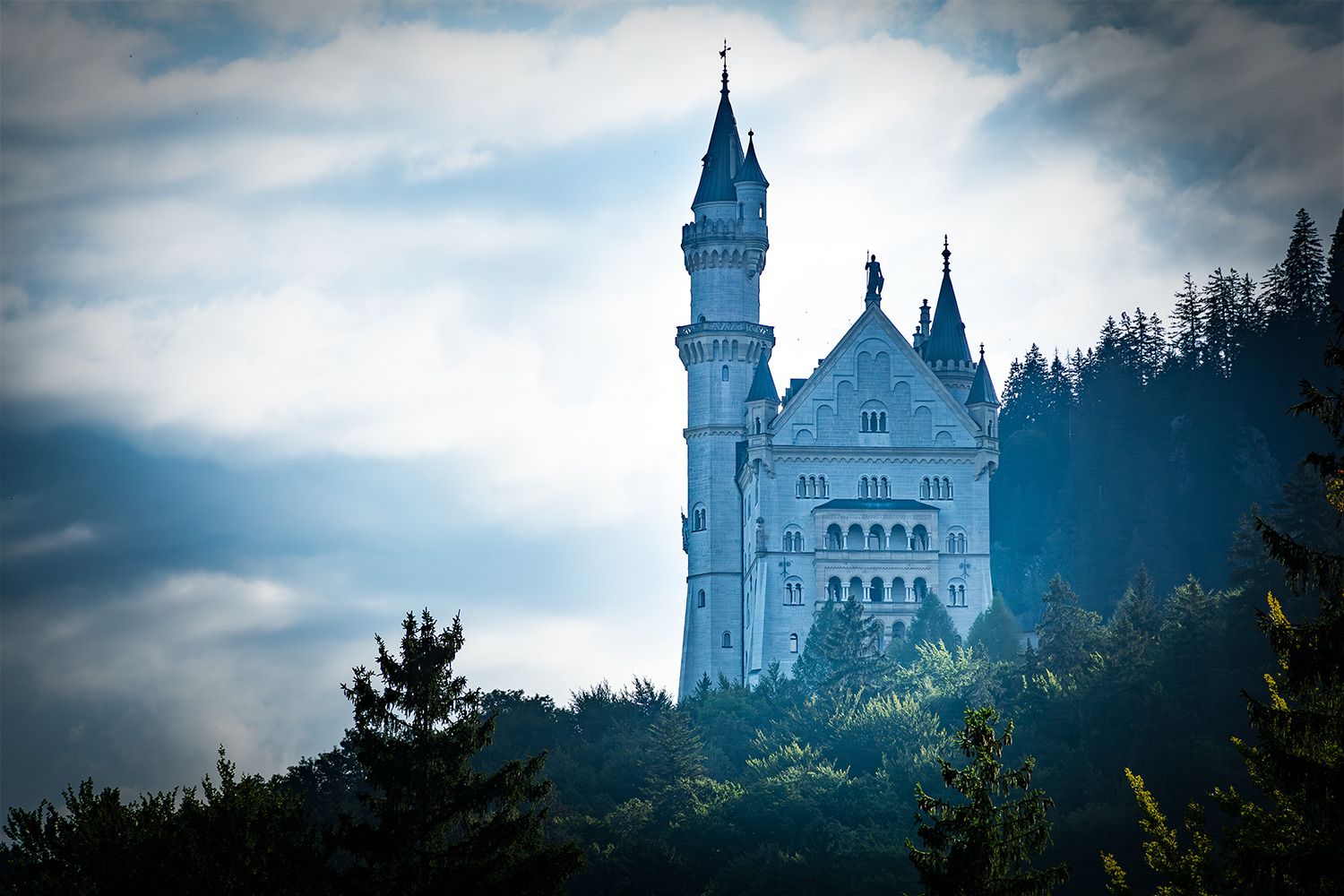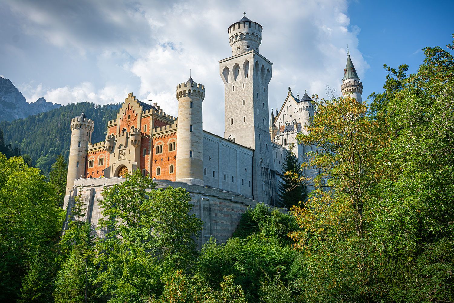 Eines der wohl bekanntesten und schönsten Sehenswürdigkeiten in Deutschland ist "Schloss Neuschwanstein" bei Füssen im Allgäu (Bayern). Baustart dieses faszinierenden Bauwerkes war der 5. September 1869. Als Vorbild diente die "Wartburg" im thüringischen Eisenach. Eröffnet wurde Schloss Neuschwanstein im Jahre 1884. Das Foto zeigt die Südfassade des Schlosses und wurde von der Marienbrücke aus aufgenommen.