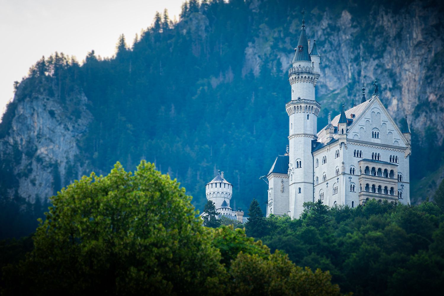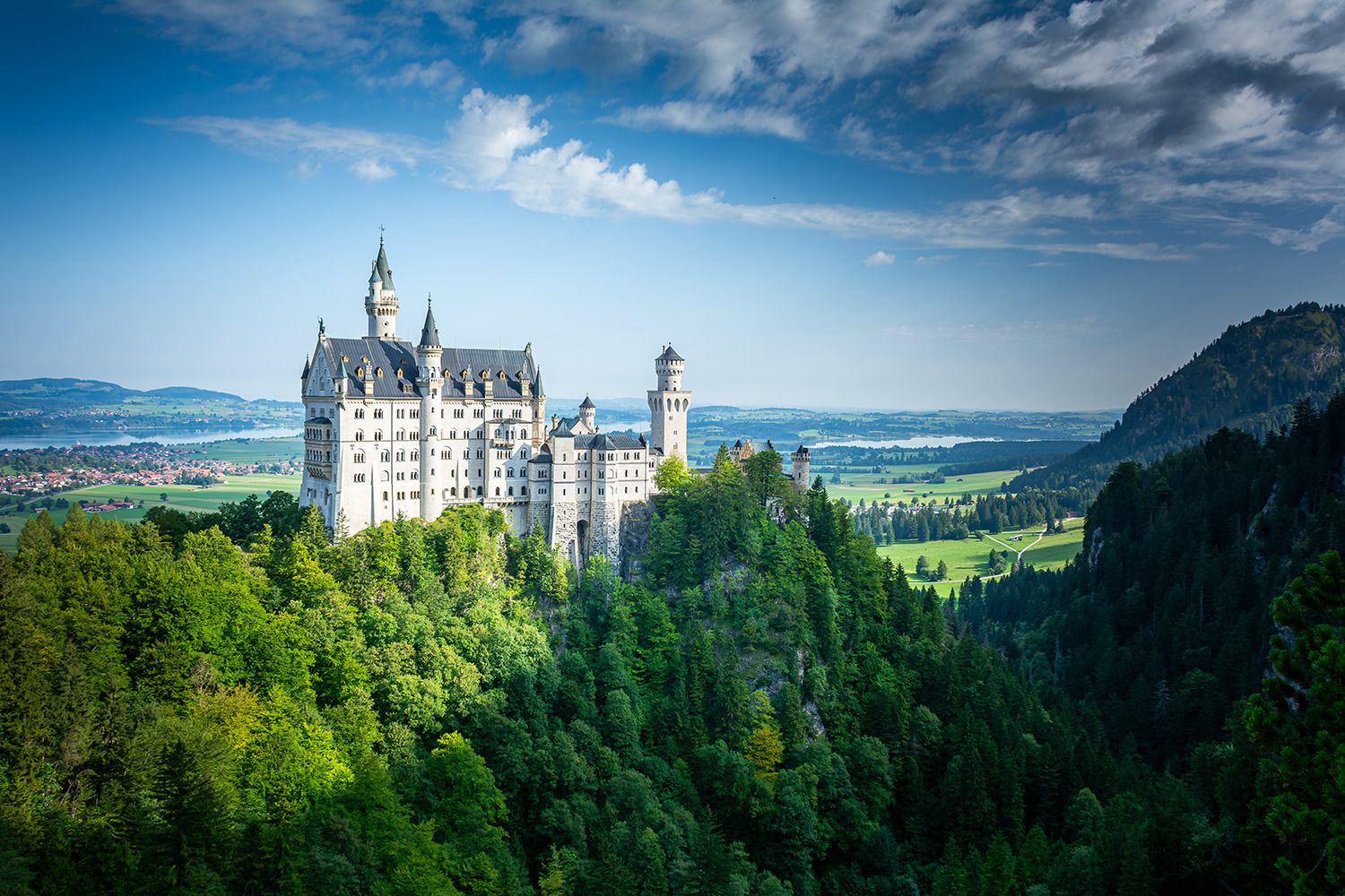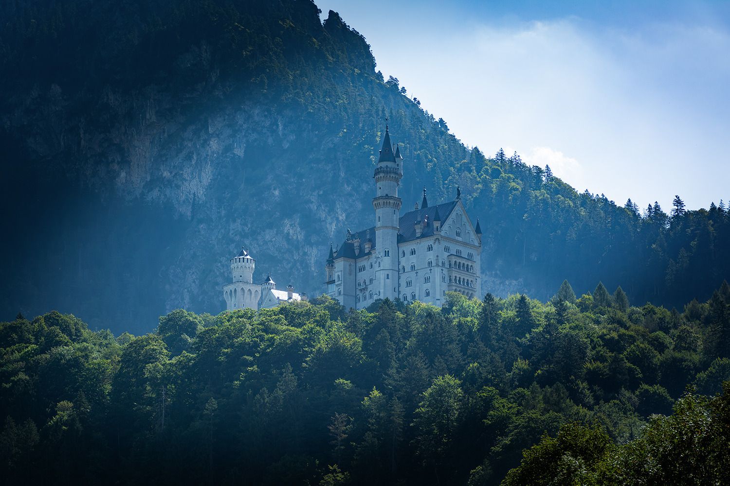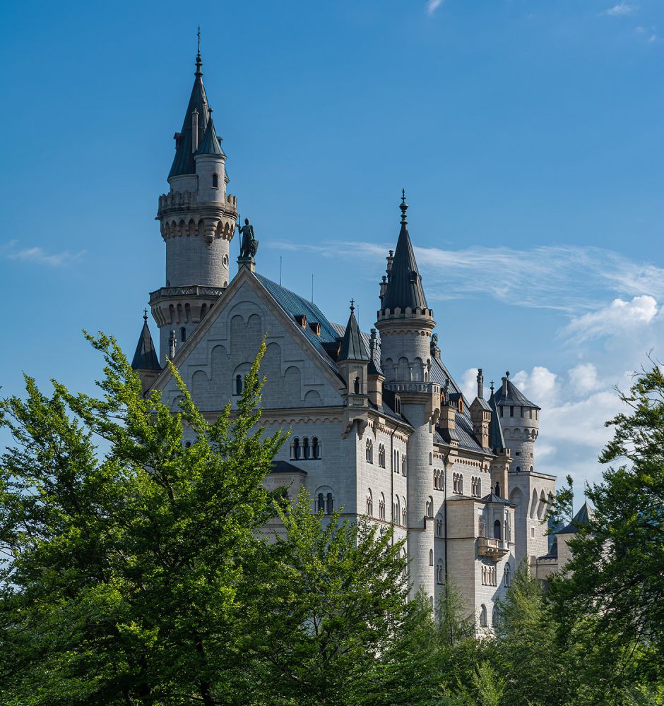 Eines der wohl bekanntesten und schönsten Sehenswürdigkeiten in Deutschland ist "Schloss Neuschwanstein" bei Füssen im Allgäu (Bayern). Baustart dieses faszinierenden Bauwerkes war der 5. September 1869. Als Vorbild diente die "Wartburg" im thüringischen Eisenach. Eröffnet wurde Schloss Neuschwanstein im Jahre 1884. Das Foto zeigt die Südfassade des Schlosses und wurde von der Marienbrücke aus aufgenommen.