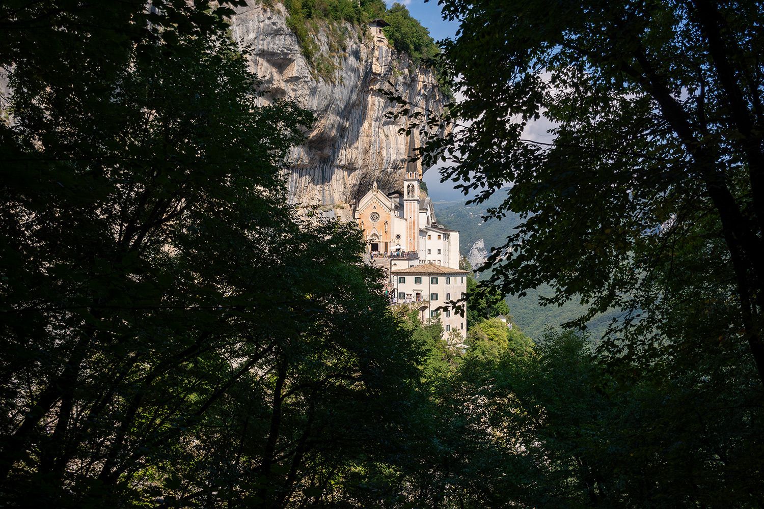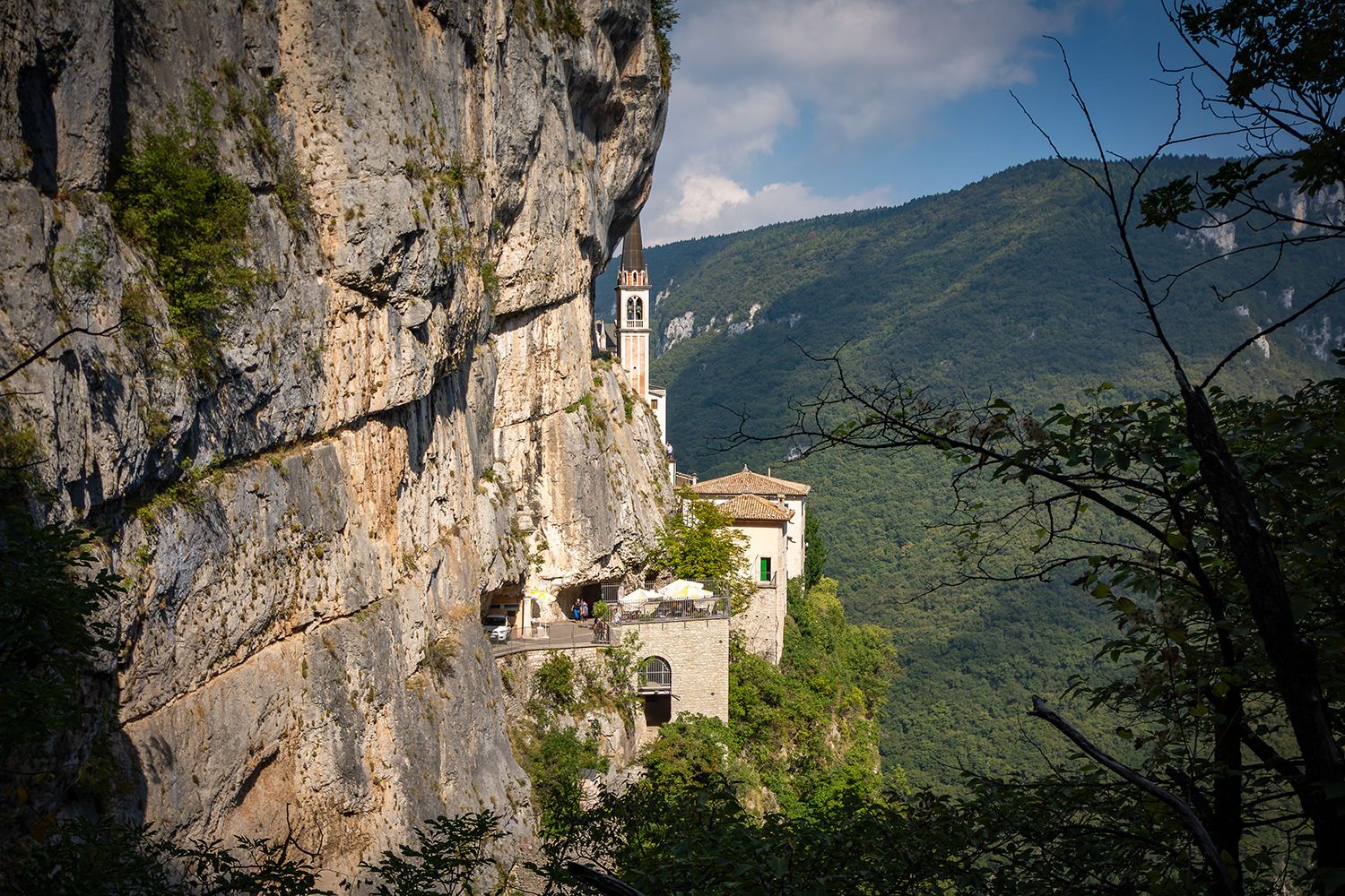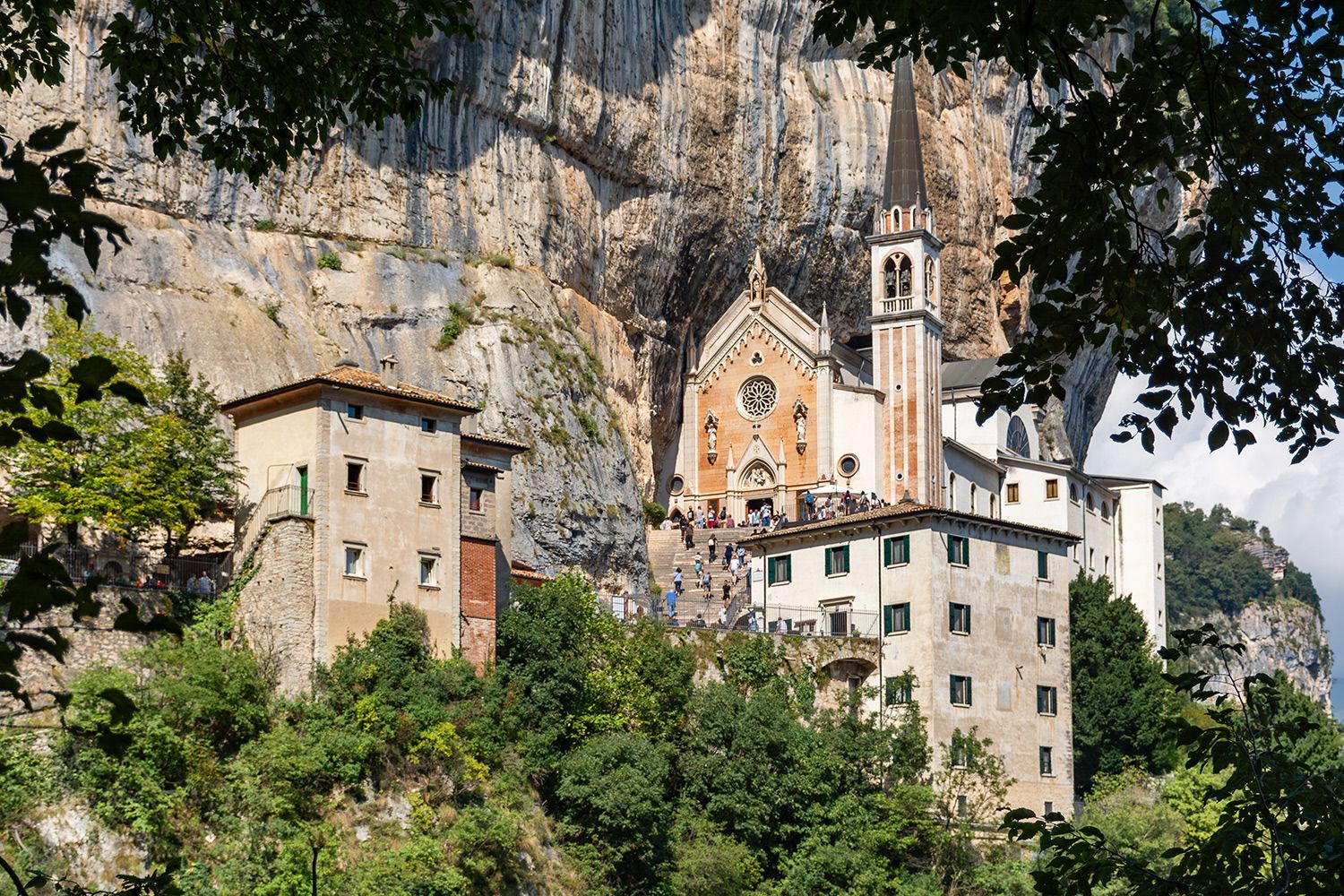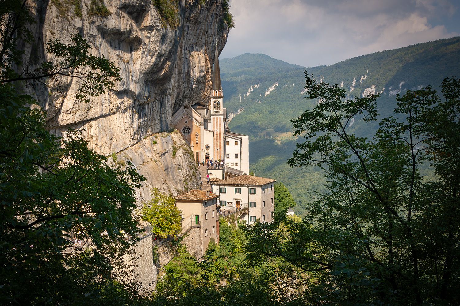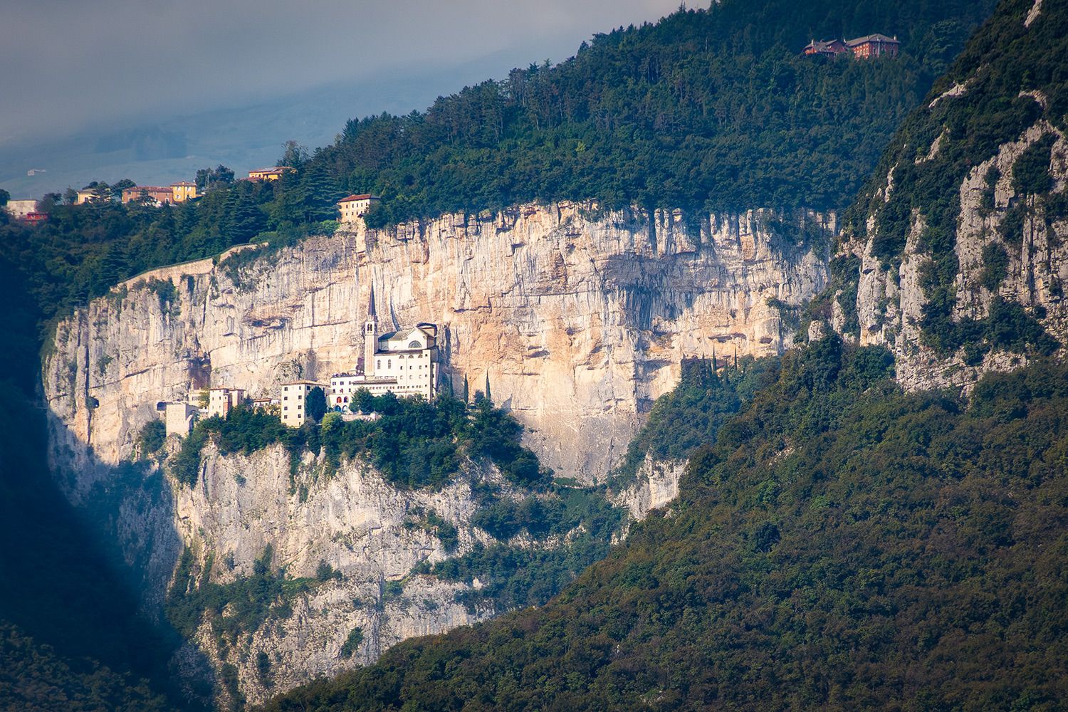 Hoch über dem Etschtal am Monte Baldo befindet sich eines der spektakulärsten Heiligtümer Italiens, die Bergkirche Madonna della Corona. Sie liegt ca. 774 m über dem Meeresspiegel und scheint an der Felswand zu schweben. Die Kirche ist ein wichtiger Wallfahrtsort seit dem Mittelalter, liegt in einer sehr ruhigen Lage und bietet den Gläubigen sowie den Besuchern einen weiten und fantastischen Blick ins Etschtal.