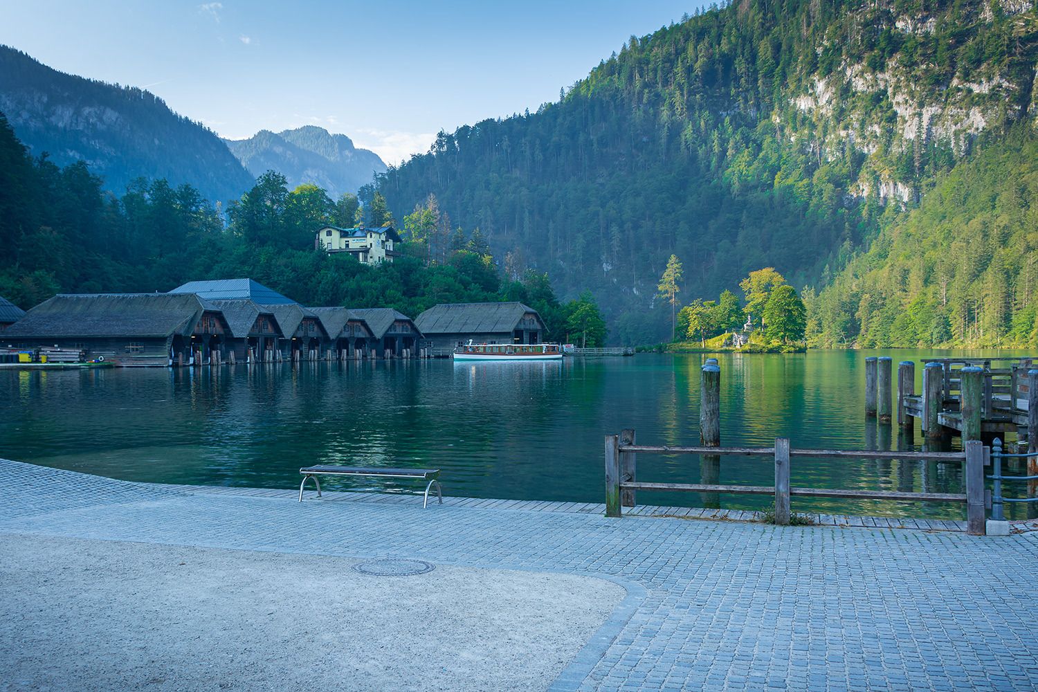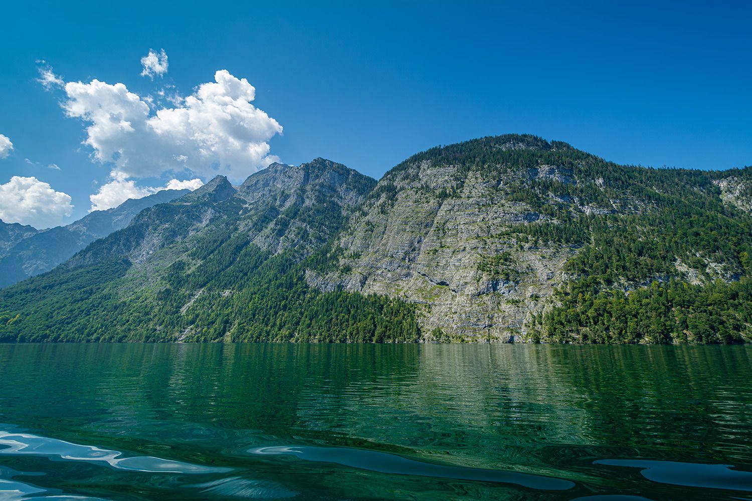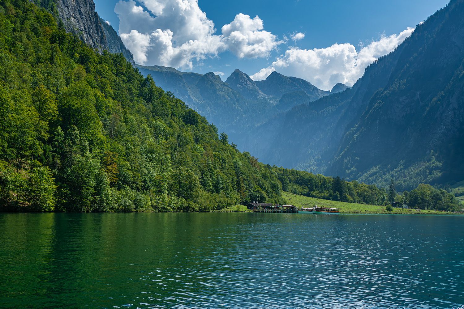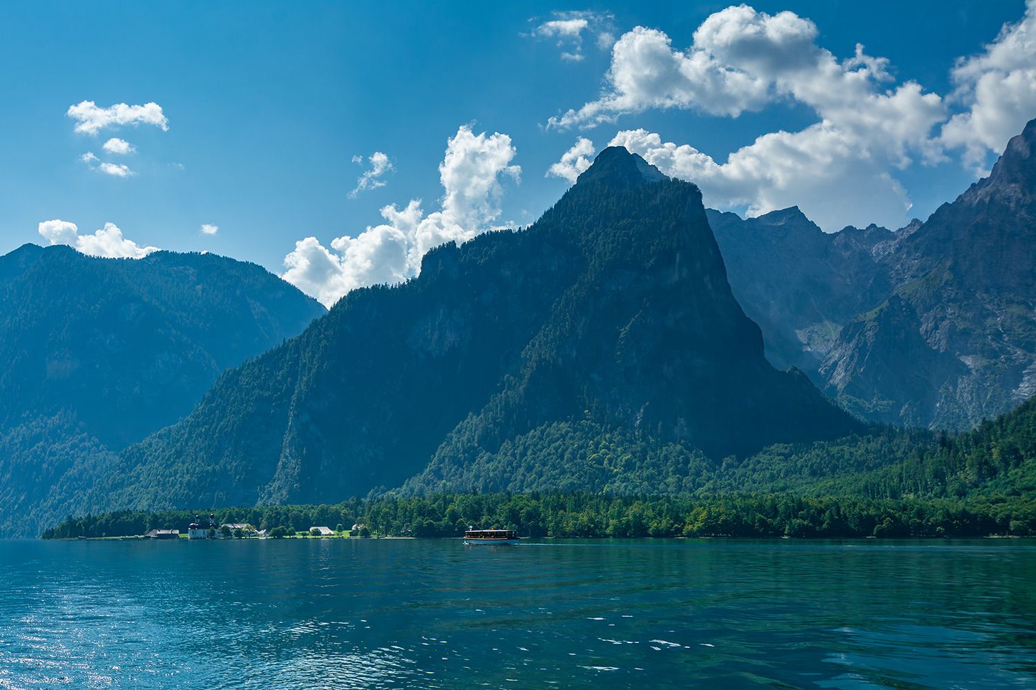 Der Königssee, der im Nationalpark Berchtesgaden in Bayern liegt, ist einer der schönsten und bekanntesten Seen Deutschlands. Er ist umgeben von steilen Felswänden der Berchtesgadener Alpen und zeichnet sich durch sein kristallklares, smaragdgrünes Wasser aus. Der See ist etwa 7,7 Kilometer lang und bis zu 190 Meter tief, was ihn zu einem der tiefsten Seen Deutschlands macht.